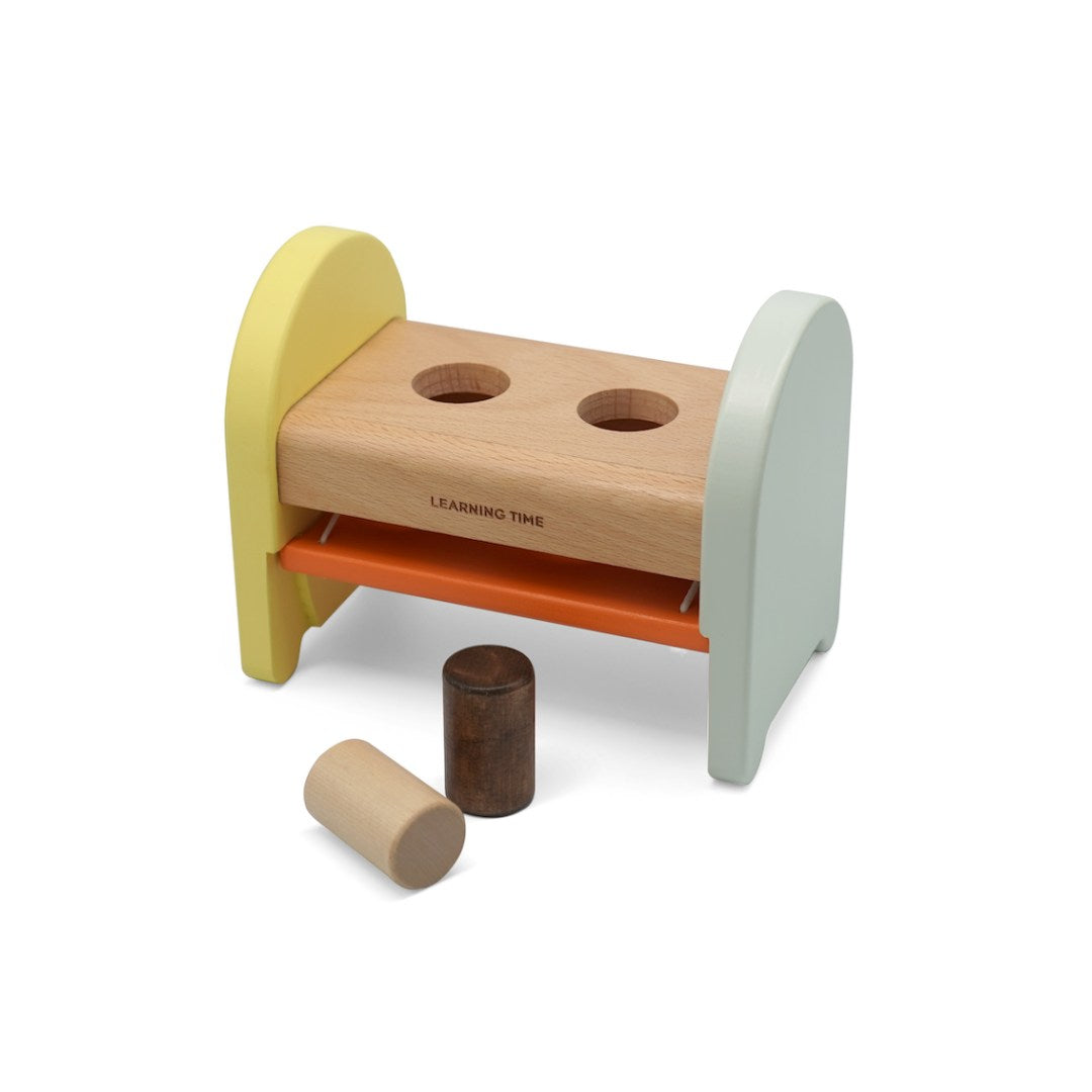 Push the platform to see the pegs tumble out, then use fine-motor skills to put them back in. (15.4x9.3x12.5cm)