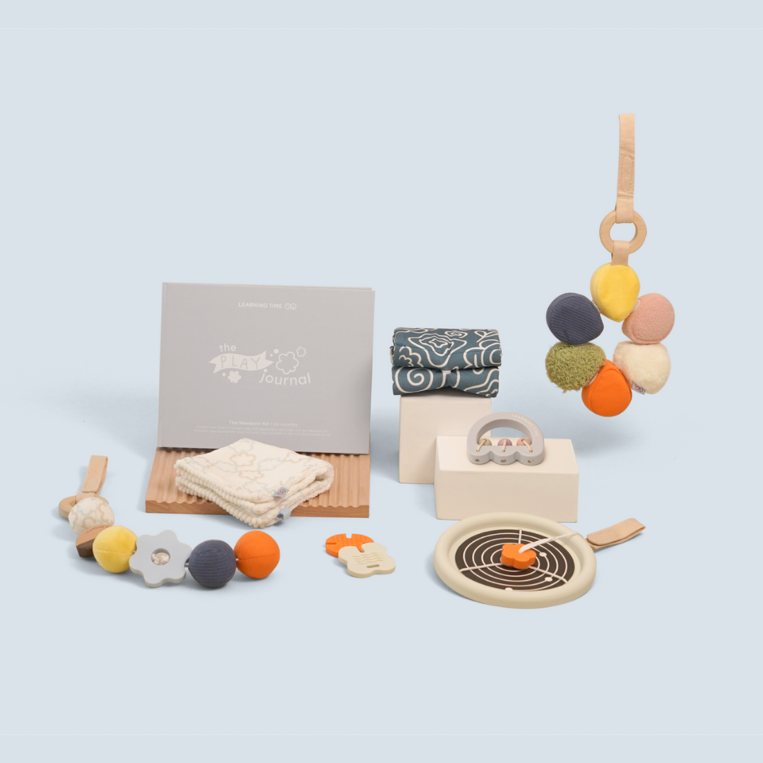 Focusing on visual stimulation, body discovery, and simple sensory play, our Newborn Kit provides everything you need to bond, play, and learn with your baby the moment they arrive home. Combine with The Tummy Time Kit for more ways to play.