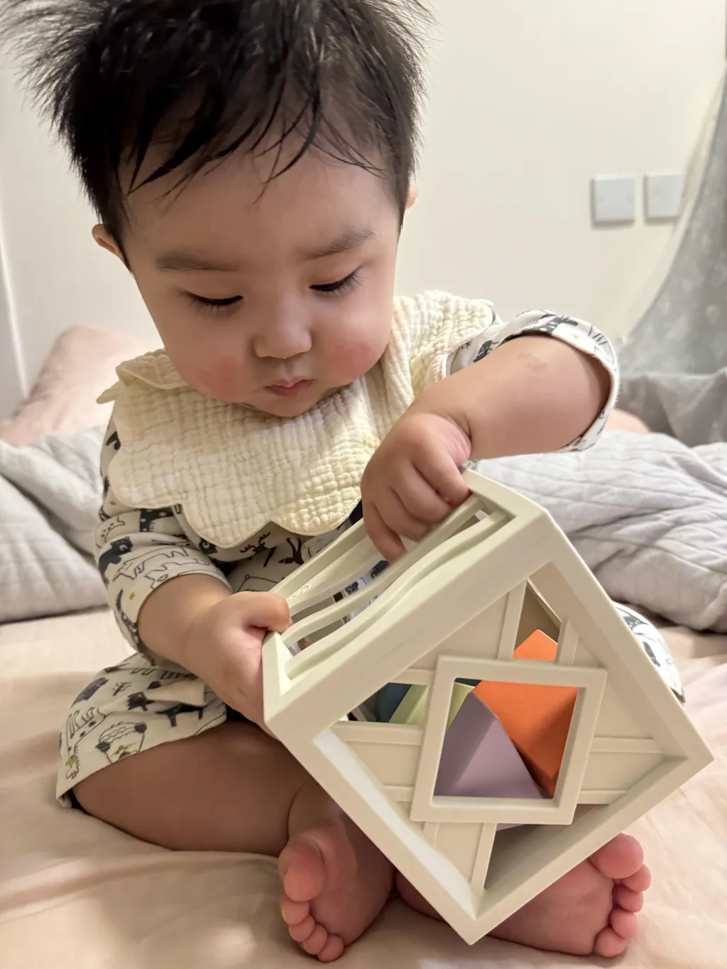 這款柔韌有彈性的形狀分類器可以讓寶寶學習形狀分類及了解“容器”的概念,是用來鍛鍊好奇小手的完美玩具,更不用擔心孩子會撞倒,安心讓寶寶自由探索。(11x11x11.5cm)